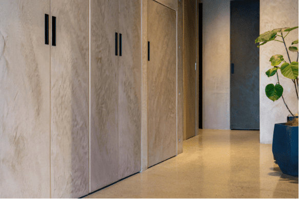 さらに、あえて補修をせず、使い込みや小傷さえ味として育てられるのも魅力です。補修しない選択が、空間の記憶を積み重ねていける、名実ともに高耐久の左官材として誕生しました。