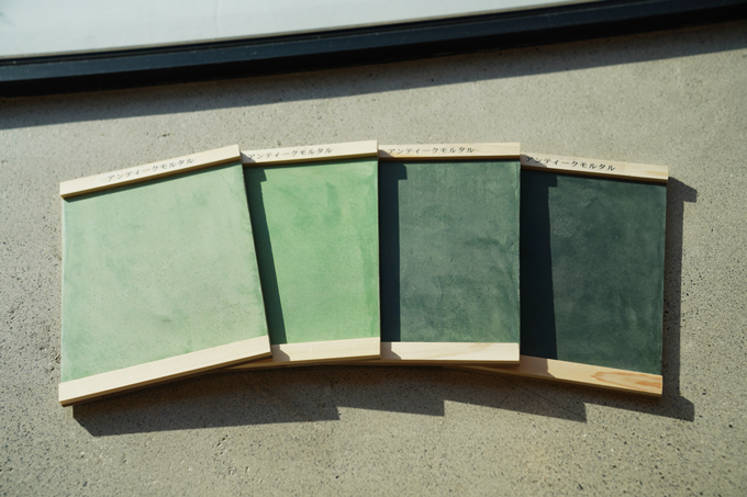 アンティーク・モルタルの魅力は、多彩なカラー、職人技によるテクスチャー表現、そして艶の有無まで含めて、組み合わせが無限に広がる点にあります。お客様の数だけ仕上げの答えがあり、その表現の数だけ空間のストーリーを描けます。