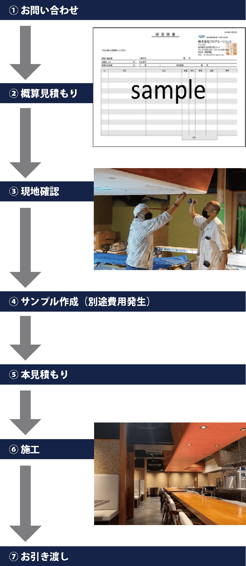 「このお店に合う色は?」「予算はどれくらい?」といった些細な疑問でも構いません。まずはあなたのこだわりを私たちにお聞かせください。