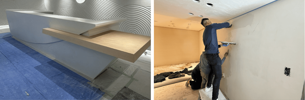 私たちは、単なる施工業者としてではなく、お客様の理想を形にするパートナーとして、ひとつひとつのプロジェクトに真摯に向き合います。テーブルやカウンターなどの什器から、壁や床などの空間を表現する全体の施工まで、設計者様の思い描くイメージを実現します。
